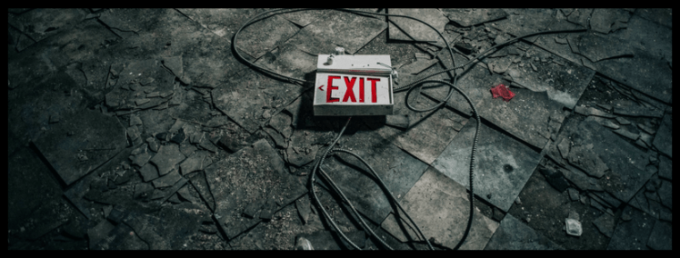 Then I began to feverishly search among the dirty, cracked, and dislodged tiles for something – anything – to help me escape. In the very middle of this cramped prison, lay a broken “EXIT” sign. Its electrical cord had been cut and was sprawled out in coils like a lifeless snake.