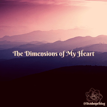 Here, there, and everywhere… pieces of my heart, like petals from a rose, are scattered all around me. I can see where I threw myself into study. Into friendships. Into work. I can remember where I hid pieces of myself in imaginations. In dreams. In secret hopes. Here, on this two-dimensional plane, I feel divided. … More The Dimensions of My Heart
